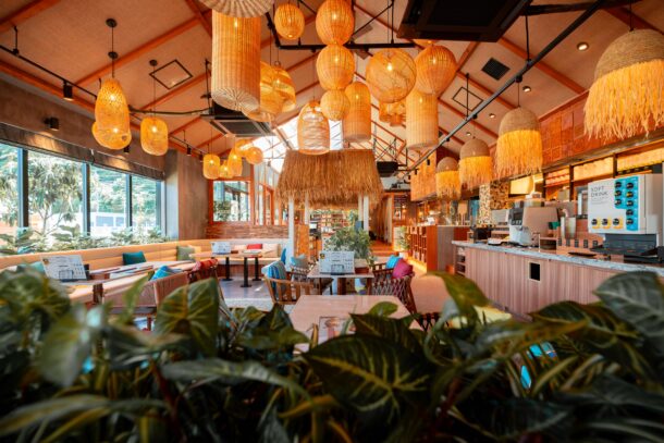 南国のリゾートホテルやビーチクラブを彷彿とさせる店内は、バリから直接仕入れた資材やインテリアによって忠実にリゾート空間を再現しております。